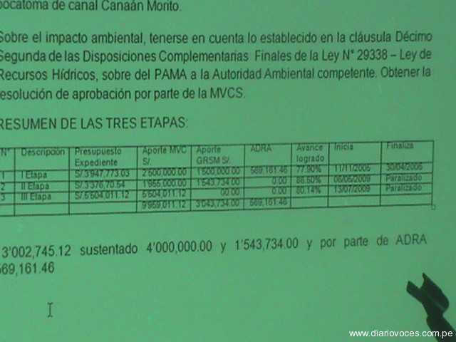 En otro de los casos Calle, explicó que a pesar de contar con información documentada de que en la gestión del ex alcalde Edy Tirado, se había derivado más de 496 mil soles del proyecto de agua y desagüe a otras obras y actividades como la construcción de parques en Tawantinsuyo, San Juan de rio Soritor y Naranjillo obras que tenían financiamiento y no tenían nada que hacer con el proyecto de agua y desagüe, no hicieron las denuncias o aclaraciones oportunas.