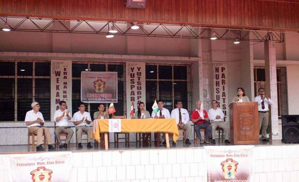 En el patio de honor se desarrolló una ceremonia por haber logrado el Licenciamiento de la Escuela de Educación Superior Pedagógica Pública Mons. Elías Olázar de Yurimaguas, que por años anheló, con la presencia de los directivos, hermanos corazonistas, equipo gestor, docentes formadores, administrativos y estudiantes.