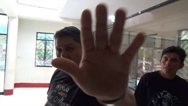“Nosotros vivimos sicosiados con la prensa, cuando una vez nos encontraron en una pollería muy cerca de un local de una entidad pública adonde llegamos antes que cierren la puerta y para firmar unos documentos tuvimos que ingresar a ese local” indicó Del Águila Castillo. Superado el incidente los hombres de prensa lograron realizar su trabajo en el interior de la municipalidad de Zapatero. (Hugo Anteparra)