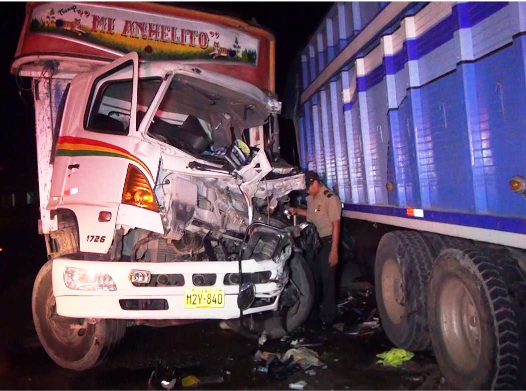 Por su parte Nelsón Ramírez Adrianzen, chofer del otro camión siniestrado resultó ileso, al ser interrogado por agentes de la Comisaría del distrito de Morales, indicó que fue impactado por el vehículo de placa de rodaje M2Y – 840, quien se abrió mucho en una curva cerrada y no le dio tiempo girar a la parte derecha de su carril.