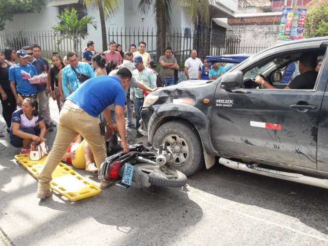 Choque de camioneta con motocicleta deja una mujer herida en Tarapoto