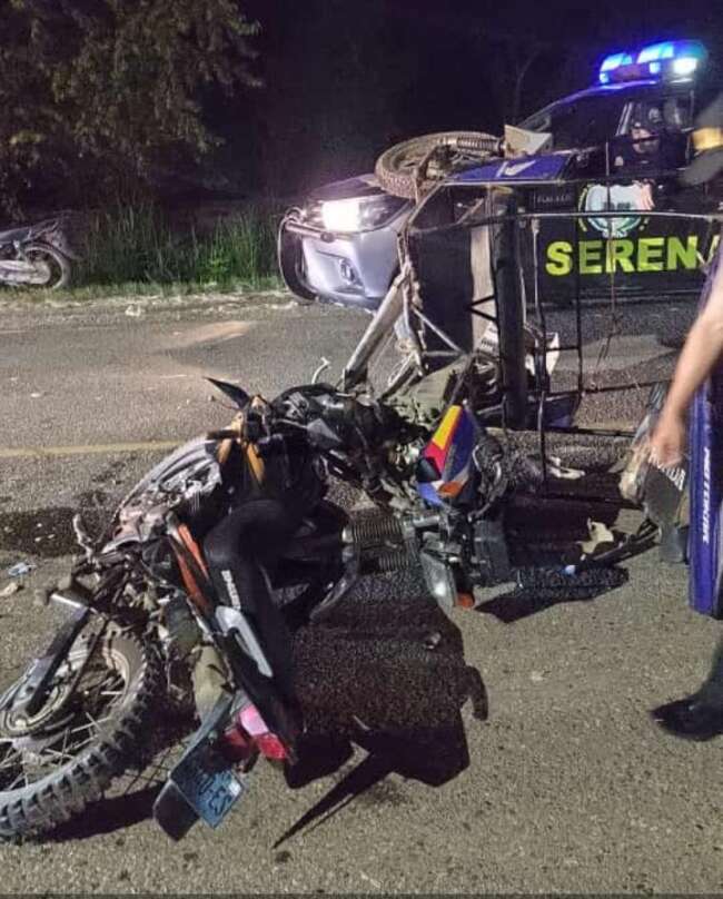 El accidente se produjo el sábado a las 23: 25 horas en la carretera Fernando Belaúnde Terry, frente a la entrada que conduce a la Institución Educativa Virgen Dolorosa, tras el choque de una motocicleta lineal contra un trimóvil. Los conductores quedaron tendidos en la pista hasta ser auxiliados por los serenos y agentes policiales.