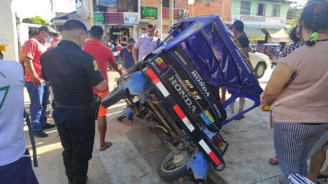Un mototaxista perdió la pierna izquierda durante un violento accidente de tránsito ocurrido ayer por la tarde en el barrio Huayco de Tarapoto, el hecho se produjo tras el choque de dos trimóviles y según los testigos, uno de ellos trató de ganar el cambio de luz del semáforo, sin embargo, esa versión está en proceso de investigación.