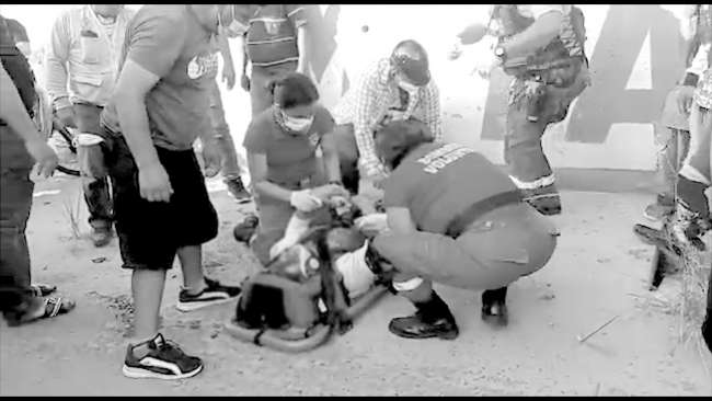 Según testigos, la motociclista salió volando de la unidad menor y terminó con un corte en la cabeza, en los dedos y otras partes del cuerpo, efectivos policiales y los bomberos llegaron al lugar para socorrer a la accidentada.