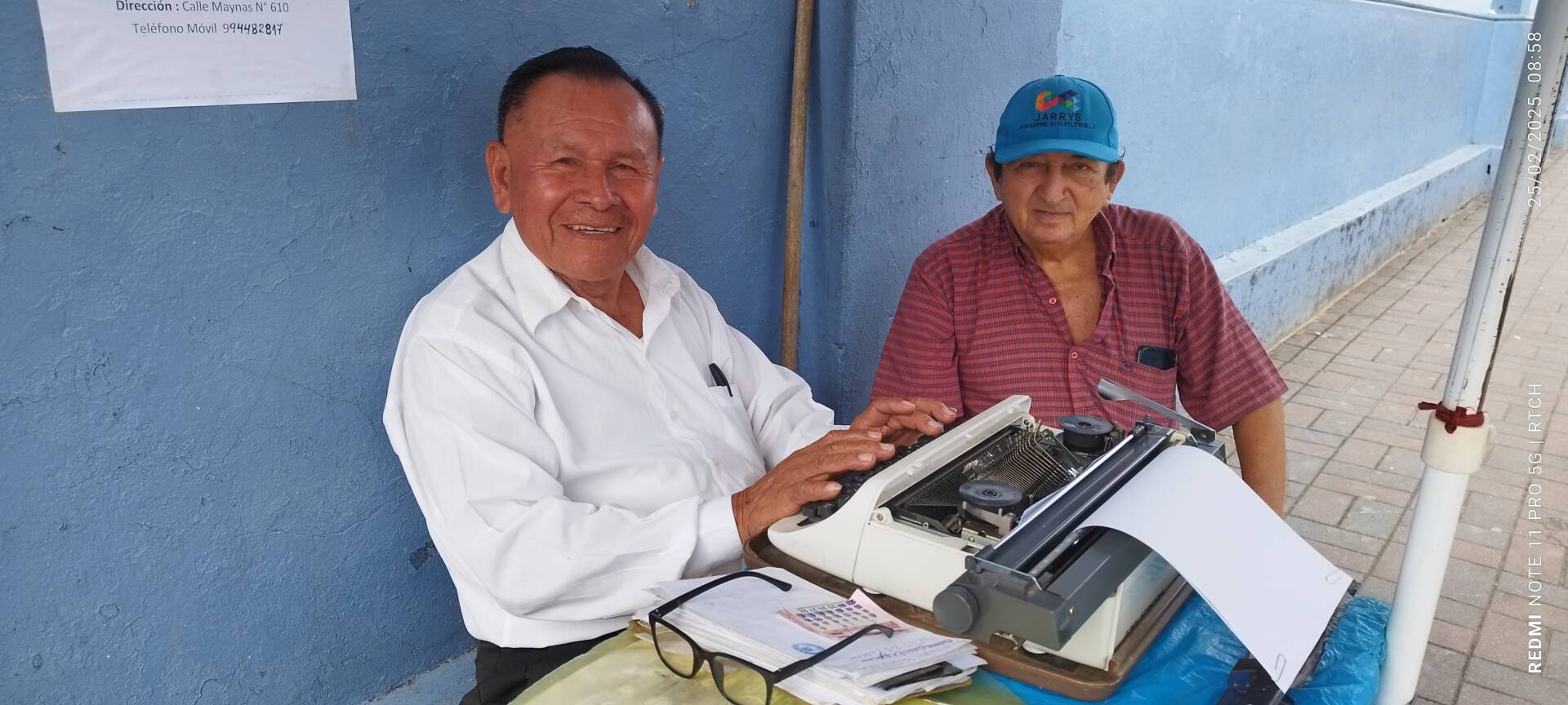 Su nombre es Agustín Cisneros Salinas (76), conocido como el “Legendario Cisneros”, es un ciudadano natural de Yurimaguas que diariamente sin importarle sol o lluvia, sigue ofreciendo sus servicios de redacción de documentos en las veredas públicas, utilizando su inseparable máquina de escribir, un símbolo de épocas pasadas. Con 40 años dedicados a este oficio, ha ganado el reconocimiento de los vecinos, sobre todo de personas del ámbito rural, entre autoridades comunales y dirigentes de organizaciones que acuden a él, para que les redacte diversos documentos desde solicitudes, oficios, cartas, memoriales entre otros. Actualmente se ubica en la primera cuadra de la Av. Jáuregui a un costado de la Iglesia Catedral.