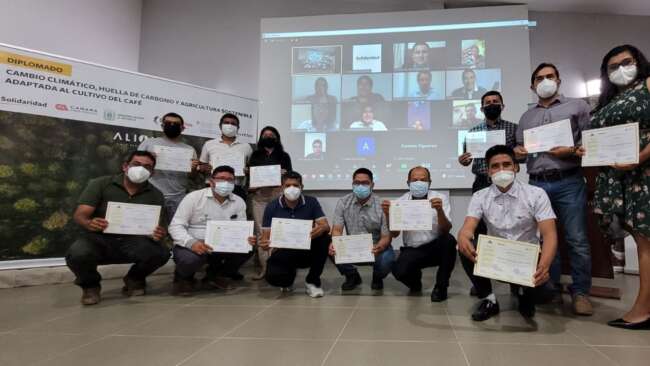 Este miércoles, se llevó a la ceremonia de graduación del primer diplomado certificado y validado por la Sunedu, denominado ‘Cambio climático, huella de carbono y agricultura sostenible adaptada al cultivo de café’, donde 30 becarios profesionales del sector público y privado vinculados al sector cafetalero, fortalecieron sus capacidades en rentabilidad y estrategias del manejo de carbono en la producción de café, iniciativa gratuita, impulsada por la Alianza por el Café Sostenible y Competitivo, en el marco de la implementación del Plan Nacional del Café Peruano 2019 – 2030.