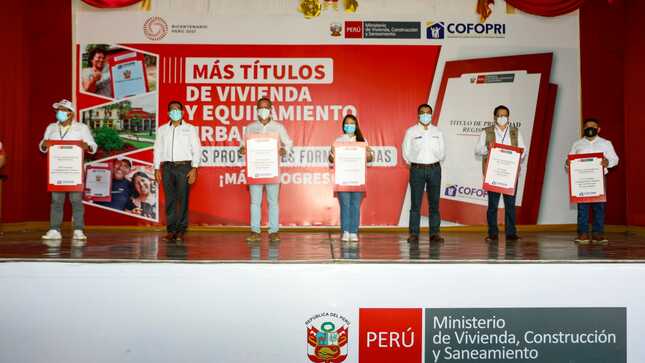 El Organismo de Formalización de la Propiedad Informal (Cofopri), adscrito al Ministerio de Vivienda, Construcción y Saneamiento (MVCS), entregó 862 títulos de propiedad a familias y entidades públicas de la región.