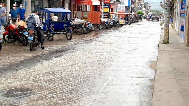 El colapso de un buzón del sistema de desagüe ubicado en la intersección del jirón Martínez de Compañón y Pedro de Urzúa en el centro de Tarapoto provocó que por largas horas se convierta en una acequia de aguas pestilentes.