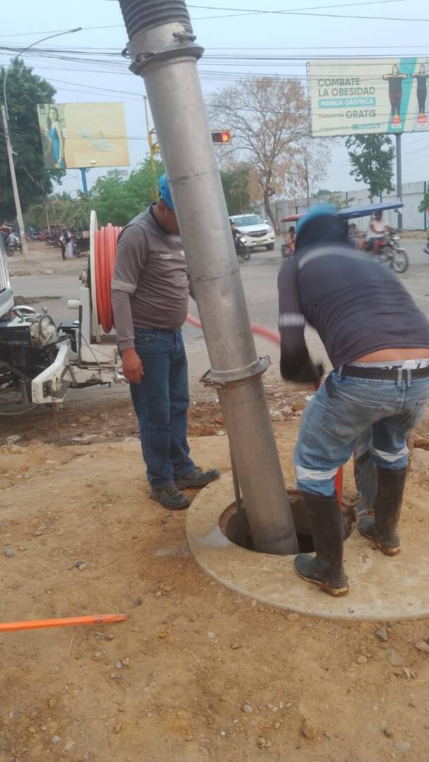 Frente al colapso del desagüe de la cuadra 7 del jirón Orellana frente al cementerio general de Tarapoto, personal de Emapa San Martín, con el apoyo del camión hidrojet realizó la limpieza y desatoro del sistema de alcantarillado sanitario.