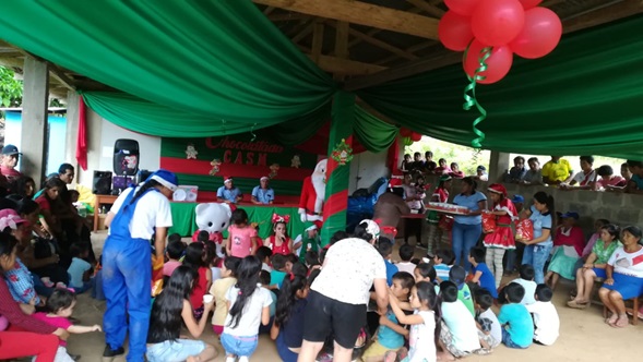 Moyobamba. Gracias a la colaboración de sus asociados, con ocasión de las fiestas de Navidad, el Colegio de Abogados de San Martín, compartió una tarde llena de alegría con los niños de los caseríos El Alfarillo y El Naranjal. La delegación encabezada por el decano Dr. Orlando Santillán Mendoza, inició su presencia participando de una tarde deportiva con los pobladores de estas localidades, para luego desarrollar el show infantil, sorteo de regalos y chocolatada para un promedio de 500 personas. Santillán Mendoza, recientemente reelecto en el cargo, señaló que estas acciones son parte del trabajo de acercamiento hacia la comunidad que realiza el Colegio de Abogados, habiendo escogido este lugar por encontrarse residiendo personas de muy bajos recursos económicos.
