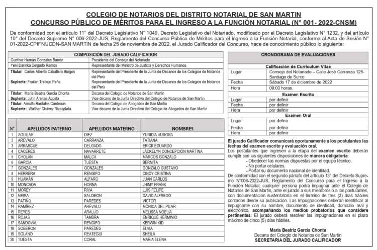 Colegio de Notarios del Distrito Notarial de San Martin: Concurso Público