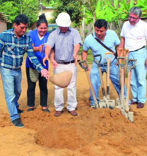 Autoridades ediles representados por el alcalde provincial de Lamas, Ing, Fernando del Castillo, conjuntamente con el gerente de Infraestructura y Obras de la municipalidad, Ing. Iván Reátegui Acedo, participaron ayer en horas de la mañana de la ceremonia de colocación simbólica de la primera piedra para la construcción de la plazuela de la Asociación de Vivienda 25 de setiembre, que se ubicará muy cerca al estadio municipal.