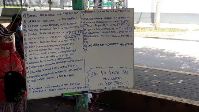 Desde hace algunos días un grupo de personas que esperan conocer el progreso de sus pacientes que están con Covid en el Hospital II – 2 de Tarapoto, colocaron frente al nosocomio una pizarra con la relación de quienes están en la Unidad de Cuidados Intensivos, situación que facilitará que los médicos tengan información oportuna para poder contactarse con los familiares.