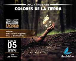 La plataforma cultural SUCHICHE CAFÉ se enorgullece en presentar COLORES DE LA TIERRA una exposición de pinturas hechas con pigmentos naturales y materiales ecológicos. En la búsqueda de equilibrio y armonía con el medio ambiente. Nos une esta búsqueda y la compartimos en esta exposición en la que esperamos puedan sumergirse en este mágico mundo.