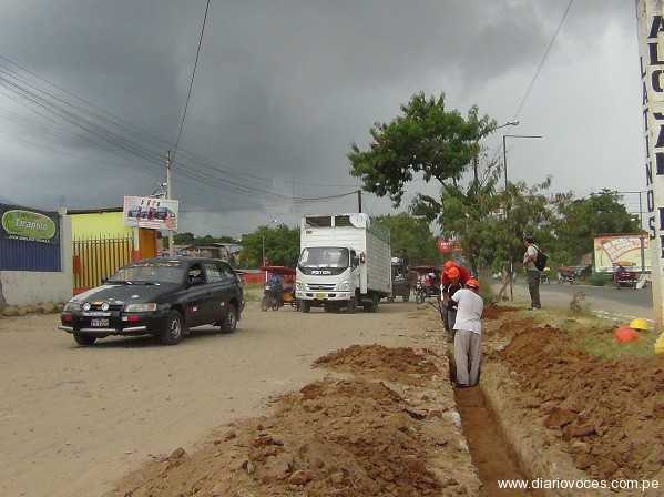 A partir de hoy martes, el tránsito vehicular será de norte a sur, por el jirón Paraíso, mientras que de sur a norte, en la avenida Salaverry, solo utilizaran un solo carril. Por el momento, personal del municipio de Morales, comenzaron a excavar, donde construirán cunetas, antes del inicio del asfaltado. (Hugo Anteparra)