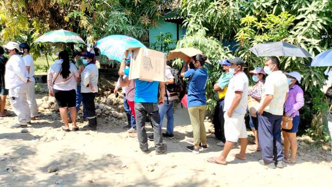 Hasta la una de la tarde, la temperatura ambiental estaba en 35 grados con sensación térmica de 39, ante esta situación algunas personas se protegieron con pedazos de cartón que un vecino les proporciono, y los minutos pasaban y la cola no avanzaba, situación que generó malestar en quienes buscaban ser vacunados.