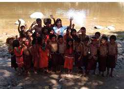 Ayer jueves la comitiva, invitó desayuno a niños de la comunidad de Awajún, culminando su presencia en la región San Martín.