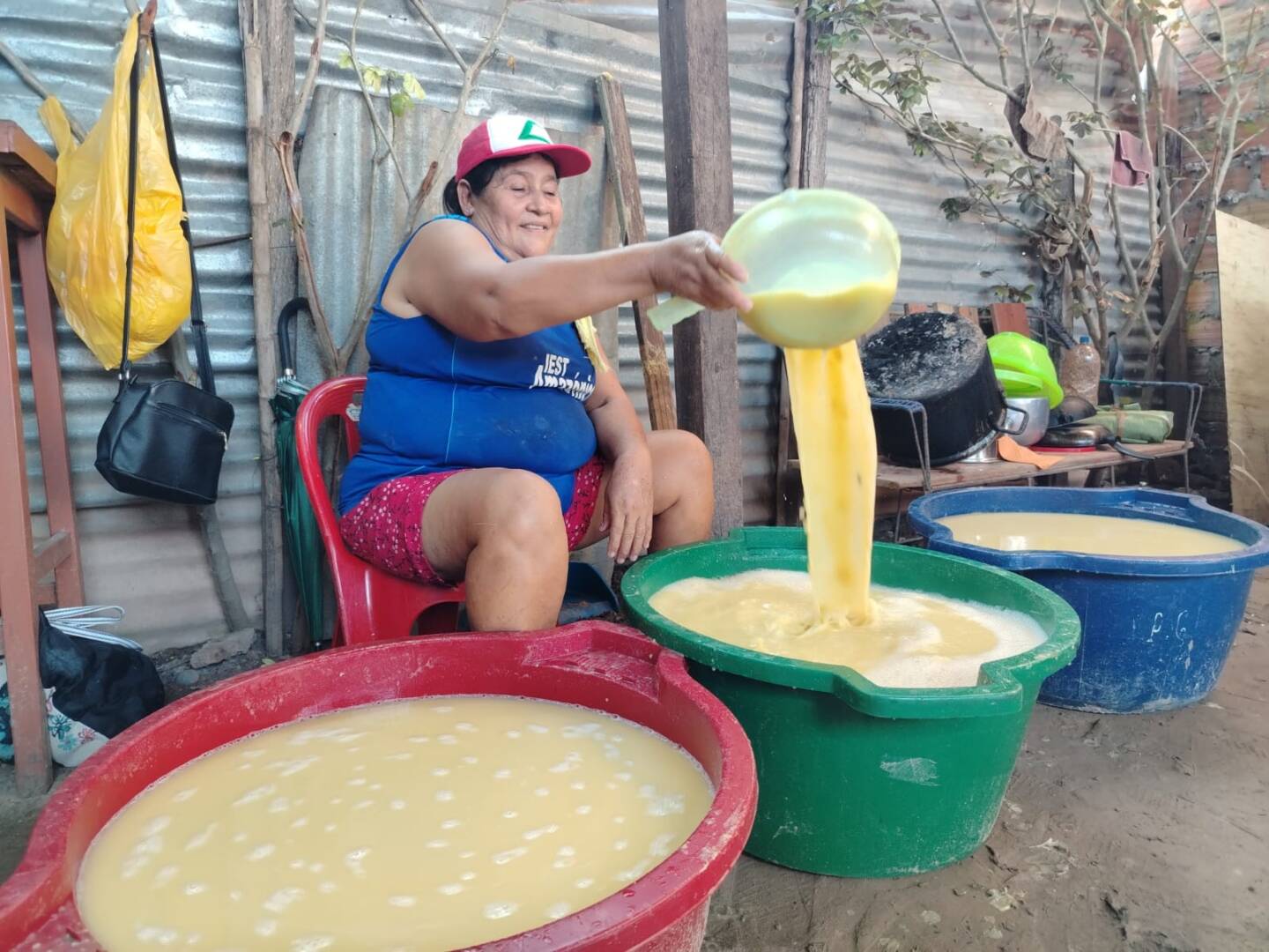 Otra de las agrupaciones visitadas fue la cabezona del Barrio La Luz, conformada por las familias Saavedra Tello, Vela Castillo y Tuesta Gonzales. Este grupo se distingue por su creatividad y unión, ofreciendo bebidas como mazato, chicha, mistela, uvachado y “amazaditos”. El proceso de elaboración del masato incluye chapeo y tres días de fermentación. Además, cada día organizan fiestas con música de bombo y baile.