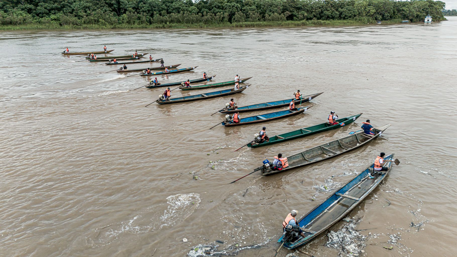El concurso de navegación fluvial en las aguas del Huallaga con embarcaciones menores, es una costumbre ancestral en todo acontecimiento de Yurimaguas, como un estímulo al esfuerzo y dedicación de hombres y mujeres que se dedican al oficio de la pesca o al servicio de transporte de carga y pasajeros hacia destinos cercanos. Por: Roger Torres