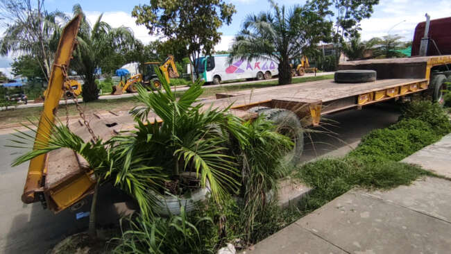 Camiones de gran tonelaje que se estacionan en la cuadra 14 de la Vía de Evitamiento de Tarapoto, están afectando plantones de coco que fueron sembrados en maceteros temporales, situación que generó la reacción de los vecinos, quienes exigen a las autoridades dar cumplimiento a la ordenanza municipal que prohíbe el estacionamiento de vehículos pesados, por ser considerado una vía rápida.