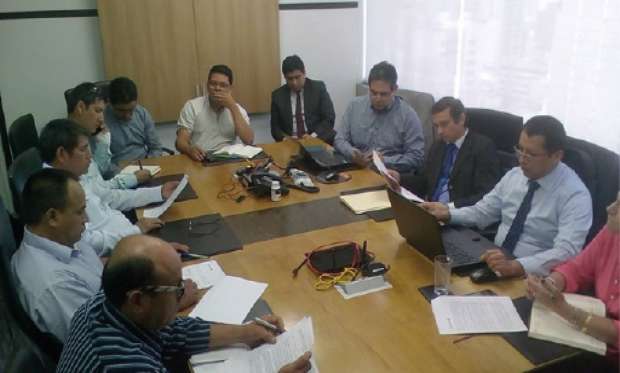 El encuentro se desarrolló en los ambientes de la empresa constructora, la gerente general Nancy Hassan explico por qué no se culmina la instalación de los equipos.