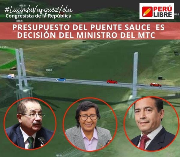 Inmediatamente no tardo de responder Lucinda Vásquez afirmando que decisión del puente Sauce es del Ministro y no de los Congresistas, asegurando que el ministro Nicolás Bustamante Coronado es el único que puede hacer anuncis y lo hará en la quincena de mayo para le inicio de tan anhelada obra.