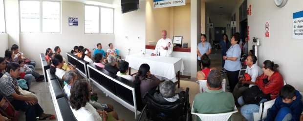 El Servicio de Salud de Medicina de Rehabilitación del hospital Tarapoto, es una de las áreas con mayor cantidad de atenciones, y este día celebró, con una homilía donde profesionales de la salud, pacientes y visitantes se unieron en solo abrazo escuchando las sagradas escrituras, y luego se continuó con la atención de terapias y rehabilitación.