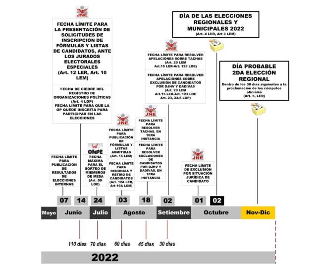 El 2 de octubre se realizarán los comicios regionales y municipales. Dentro de los 30 días siguientes a la proclamación de los resultados oficiales, podrá fijarse la fecha para la segunda vuelta de nivel regional.