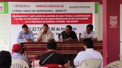 Juanjui. El alcalde José Pérez Silva dio a conocer que en breve se ejecutará el proyecto “Mejoramiento y Ampliación del Sistema de Agua Potable, Alcantarillado y Planta de Tratamiento de las Aguas Residuales en 10 Localidades de la provincia de Mariscal Cáceres”, con una inversión de cerca de 23 millones 730 mil soles provenientes del Programa Invierte Perú.