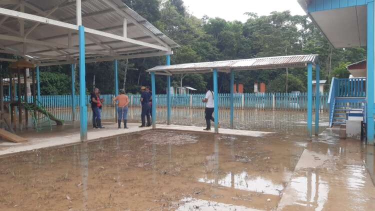 Continúa las inundaciones en el distrito de El Porvenir – Pelejo, en la zona del Bajo Huallaga, situación que viene afectando a la Institución Educativa Víctor Raúl Haya de La Torre, hasta donde llegó el director de la Unidad de Gestión Educativa Local de San Martín para verificar la situación y tomar acciones al respecto.