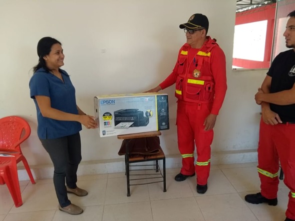 Moyobamba. Un buen gesto de solidaridad realizaron los representantes del Consultorio Veterinario “Gaia”, al haber entregado en calidad de donación, una impresora multimedia a la Compañía de Bomberos Voluntarios de Moyobamba, con la finalidad que puedan dar un buen uso y suplir en parte las necesidades que carecen.