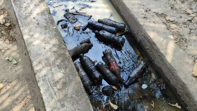 Contaminan cuneta con aceite quemado en la cuadra 15 del jirón José Olaya de Tarapoto