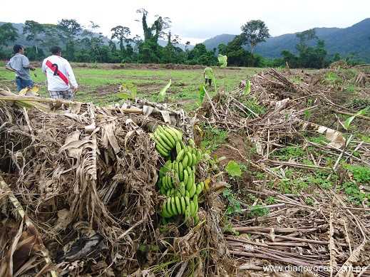 El terreno tiene un área de 927 hectáreas, y se encuentra ubicada en el valle del Shanusi, hace unos años fue hipotecado al Banco Continental, por otra persona que también señala ser el propietario. El caso se viene ventilando en el Juzgado Mixto de Lamas, en tanto más de 25 familias ya fueron desalojadas del terreno. (Hugo Anteparra)