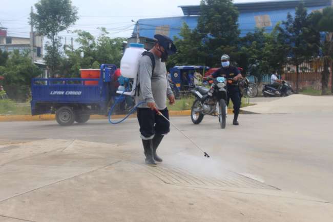 La Municipalidad Distrital de Morales en coordinación con la Red de Salud de Morales; desde tempranas horas de ayer miércoles 6 de abril procedieron a realizar trabajos de desinfección de los llamados puntos críticos de aglomeración de personas así como de diversas calles del distrito papayero, todo ello como parte de las medidas de emergencia adoptadas para prevenir el COVID-19.