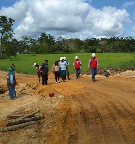 El gerente general del Proyecto Alto Mayo, Ing. Wilson Becerra Pérez, en una visita inopinada, comprobó que las labores estaban enfocadas al replanteo topográfico de estructuras para alcantarillas, el replanteo y corte de laderas, la colocación de alcantarillas y el cercado de los predios por donde cruza esta vía, con un avance del 4%.