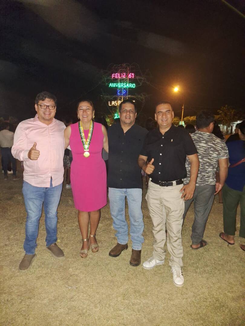 Por la Banda de Shilcayo, está Liz Leveau, actual alcaldesa delegada de Las Palmas, precisamente en esta localidad se les vio a los cuatro en el aniversario del centro poblado.