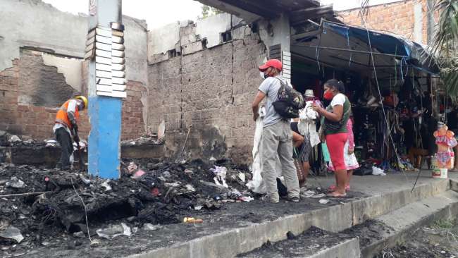 Ayer por la mañana, un grupo de mujeres llegó hasta los locales siniestrados en el incendio, con la finalidad de remover los escombros en busca de prendas de vestir, calzados y de algún objeto que les podría servir para utilizarlos junto a sus familiares, sin embargo, fueron pocas las cosas que pudieron rescatar.