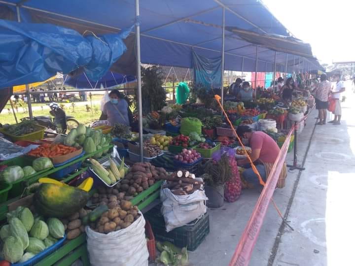 Continúan los trabajos de acondicionamiento de estructuras metálicas en la Urb. Vista Alegre para la reubicación de los comerciantes minoristas que permanecen en el Campo Ferial Ayaymama de Moyobamba.
