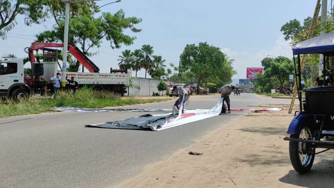 Ayer al mediodía se registró un incidente en momentos que los fiscalizadores municipales determinaron bajar una estructura metálica para panel publicitario frente al cementerio general de Tarapoto, situación provocó la reacción de los representantes de la empresa.
