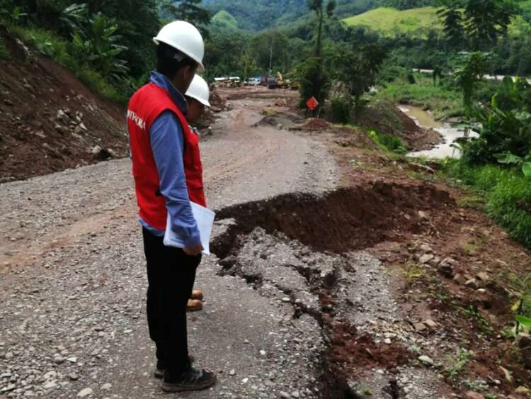 Asimismo, durante la inspección se verificó que el tramo de la carretera Nueva – Nueva Ilusión se encuentra intransitable debido a la erosión de 60 metros de la plataforma de pavimento, debido a que solo se construyó una alcantarilla que no encausa adecuadamente el agua de las lluvias, provocando el desprendimiento del suelo.