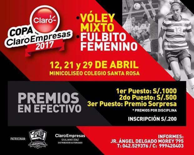 No puedes vencer a alguien que nunca se rinde. Demuestren su talento en equipo y ganen una de las copas más importantes de TARAPOTO. La Copa Claro Empresas de Giuliano Díaz en su edición cuarta.