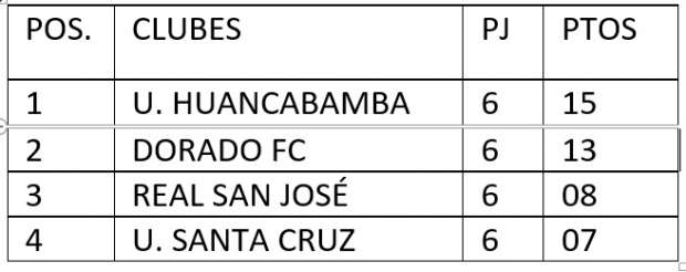 De interesante se puso el campeonato en la localidad de San José de Sisa. En esta localidad se juega la fase final de la liguilla con cuatro equipos. La escuadra de Unión Huancabamba lidera este campeonato con 15 puntos y su cercano perseguidor es la escuadra de El Dorado FC., con 13 puntos.