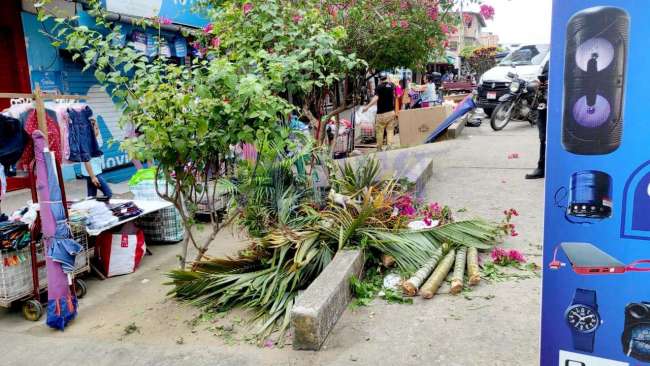 Ronald Gatica Isuiza, es un comerciante que fue el primero en percatarse que tres palmeras que de las muchas que cuidan, estaban cortadas con machete y hasta el momento no encuentra razones para que corten esas especies que ya tenía como cuatro metros de alto y les daba sombra a los vendedores.