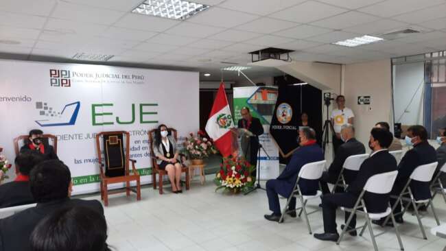 Con la presencia en forma virtual de la presidenta del Poder Judicial, jueza suprema Elvia Barrios Alvarado, se puso en funcionamiento el Expediente Judicial Electrónico (EJE) y Mesa de Partes Electrónica (MPE) en la especialidad familia subespecializado en violencia contra las mujeres e integrantes del grupo familiar de la Corte Superior de Justicia de San Martín.