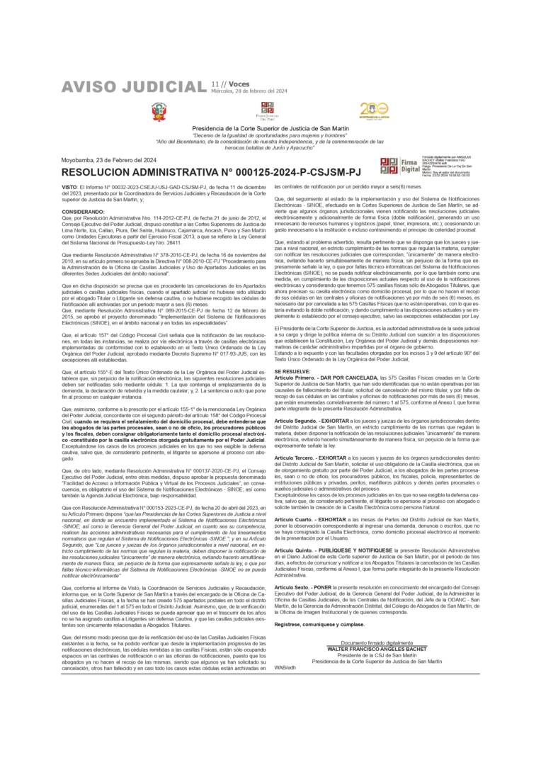 Corte Superior de Justicia de San Martin: Resolucion Administrativa N° 000125-2024-P-CSJSM-PJ y Anexo I