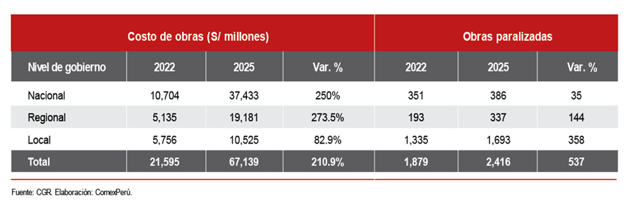 Costo de las obras paralizadas se triplicó entre 2022 y 2025