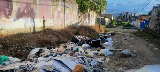 Desde hace varios días, la cuadra dos del jirón Capirona en el barrio Partido Alto de Tarapoto se está volviendo un basural, debido a ser un lugar solitario, situación que es aprovechada por personas inescrupulosas que arrojan sus desperdicios sin pensar en la contaminación ambiental que afecta a la gente que transita por ese lugar.