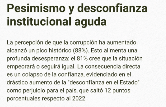 En ese contexto, comprender la magnitud de esta crisis de confianza se vuelve un paso imprescindible. Sin un reconocimiento profundo del problema y sin reformas estructurales que vayan más allá del discurso, la corrupción seguirá siendo no solo un mal persistente, sino una barrera real para el desarrollo democrático del país.