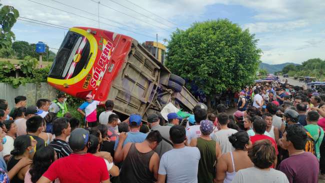 El accidente se produjo a las 15:45 horas, frente a la localidad de Juan Guerra, en el kilómetro 635 de la carretera Fernando Belaúnde Terry, tramo sur, el ómnibus se dirigía desde Tarapoto hacia Lima. Los testigos del hecho manifestaron que el trimóvil salió de manera intempestiva hacia la pista y por la velocidad en la que se dirigía el vehículo mayor no le dio tiempo de frenar al conductor, sin embargo, esa versión es materia de investigación para confirmarlo o descartarlo.