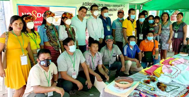Texto de Imagen: LÍDERES Y LIDERESA DE LOS CRFAS EN ALTO AMAZONAS